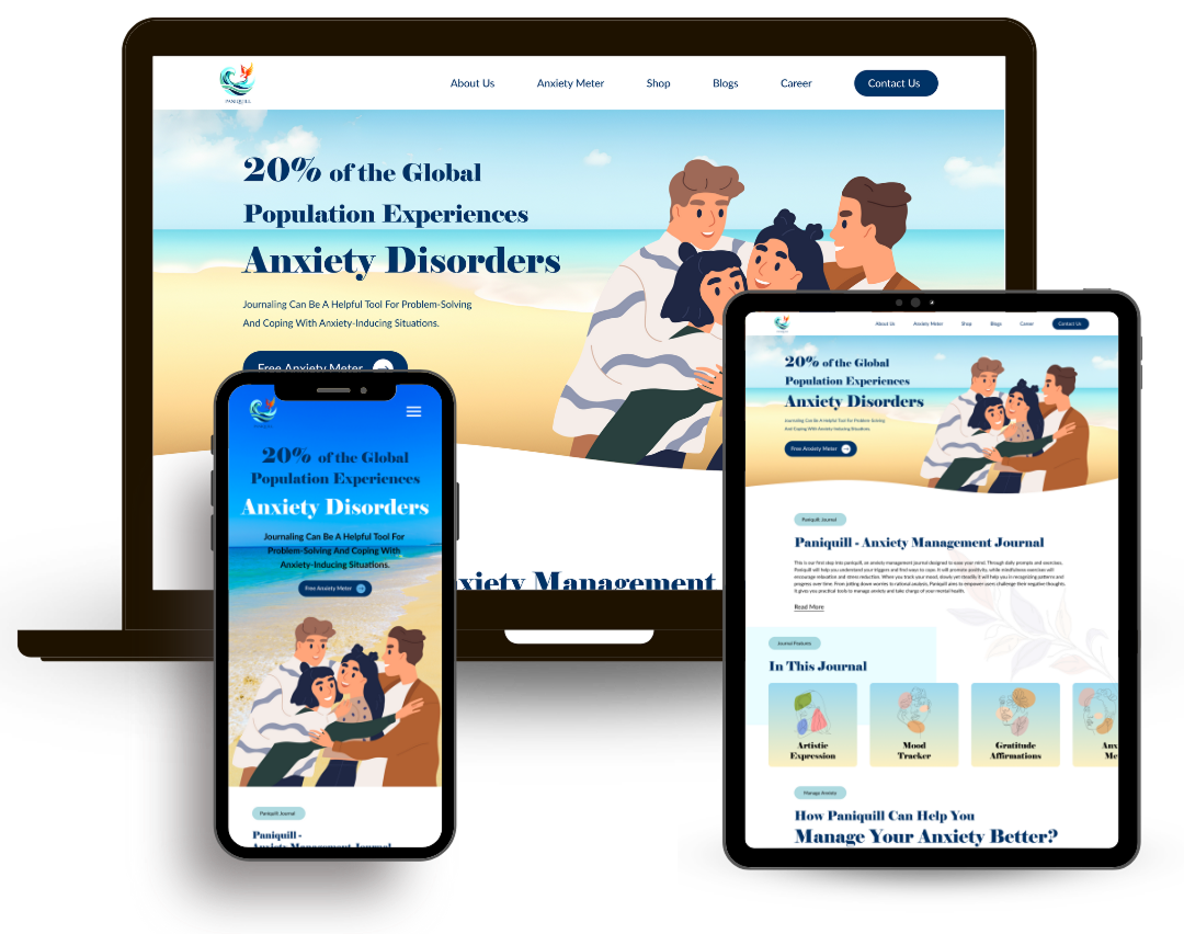 Paniquill needed a user-friendly and visually soothing website to introduce its anxiety management journal. The site had to effectively communicate the brand’s mission, provide easy navigation, and create an engaging experience for visitors.